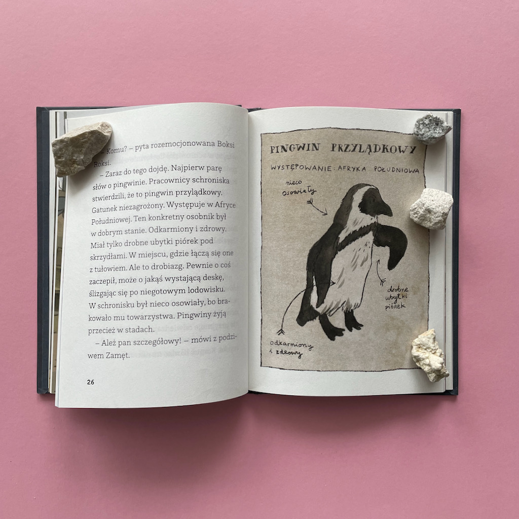 Szemrane typki, zaginiony pingwin, podejrzany biznesman i prywatne pingwinarium. Tyle dziwnych wątków w jednej sprawie. Czy Agent Czajka poradzi sobie z zagadką. Czy Inspektor Zamęt i Boksi Roksi będą przydatnymi pomocnikami? I jaką rolę, w całej sprawie, odegra Kot Biurowy? Tego wszystkiego dowiecie się, czytając historię. Przecież nie będę wam tego zdradzać!