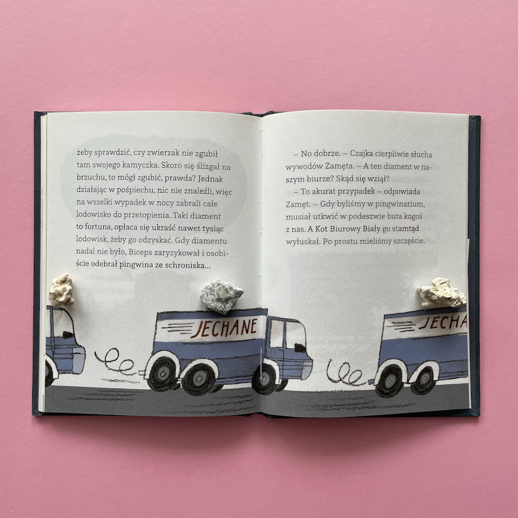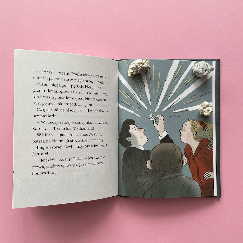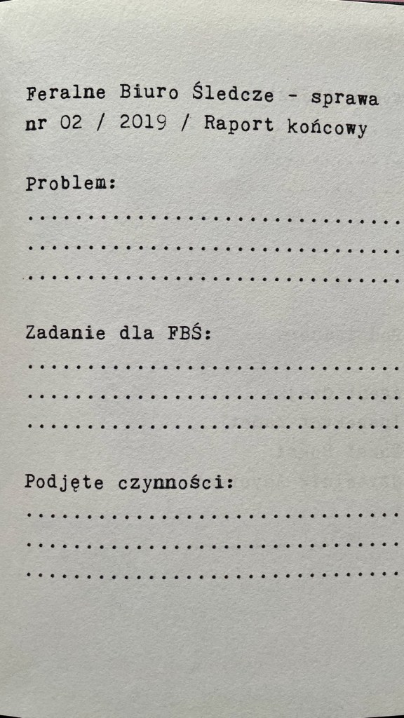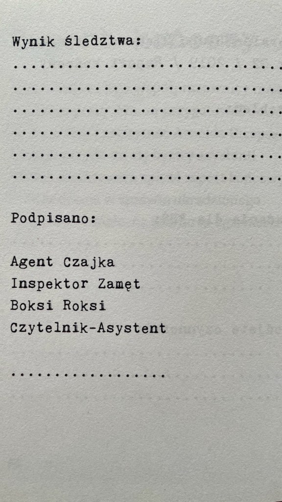 Dodatkową atrakcją jest umieszczony na końcu szablon do napisania Raportu końcowego ze sprawy. To fantastyczny pomysł. Po pierwsze: pozwala wydłużyć przygodę z lekturą i bohaterami. Po drugie: uczy aktywnego czytania i pozwala sprawdzić czy dziecko czytało tekst ze zrozumieniem. Pamiętajmy, że samo czytanie to dopiero połowa sukcesu. Musimy sprawdzać czy dziecko wie, o czym właśnie przeczytało. To jest przecież kluczowa umiejetność w całym życiu.