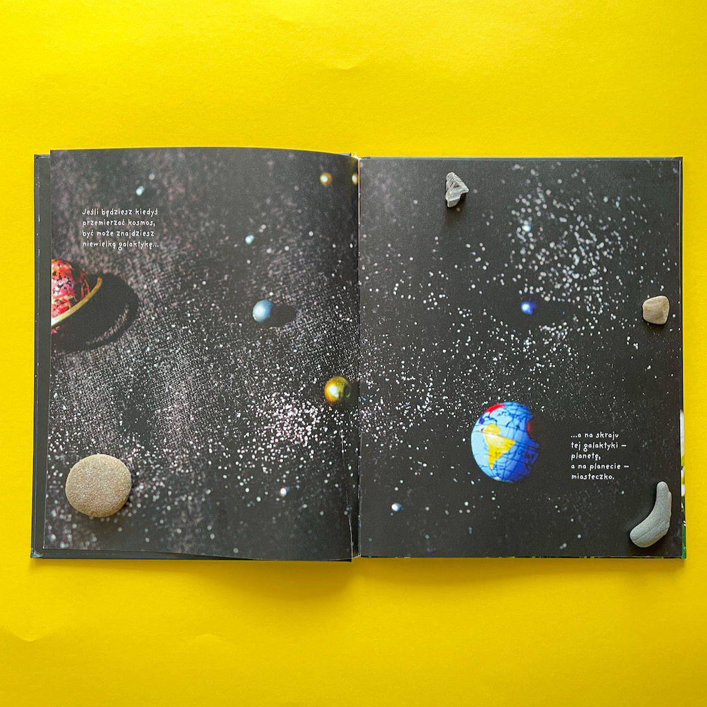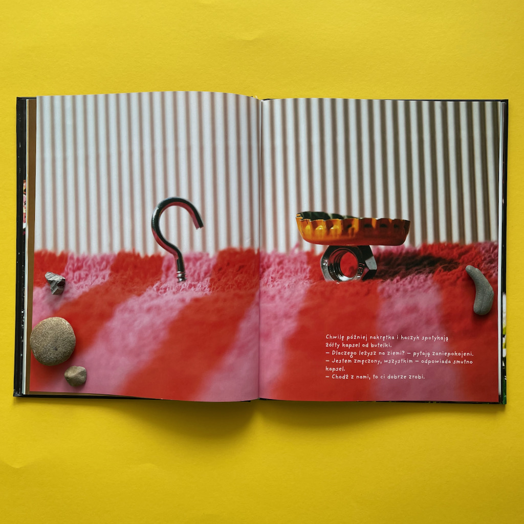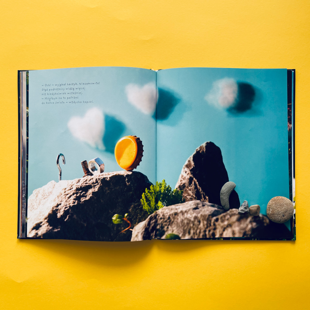 To piękna opowieść w niesamowitej i niespotykanej oprawie graficznej. Autorka stworzyła miniaturowy świat z rzeczy odnawialnych, z drugiej ręki. Sfotografowała całą historię w tej wykreowanej rzeczywistości. Zadbała o wszystkie szczegóły, a w swoich pomysłach nie raz zaskoczyła doborem materiałów. Dla moich dzieci świetną zabawą jest odkrywanie z czego jest zrobiona chmurka, z czego wzburzone morze, rynna czy miotła.