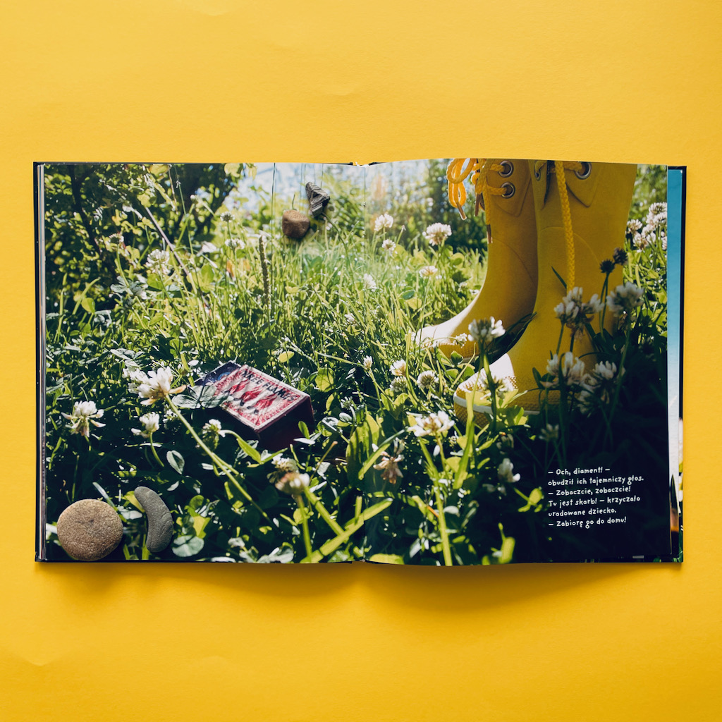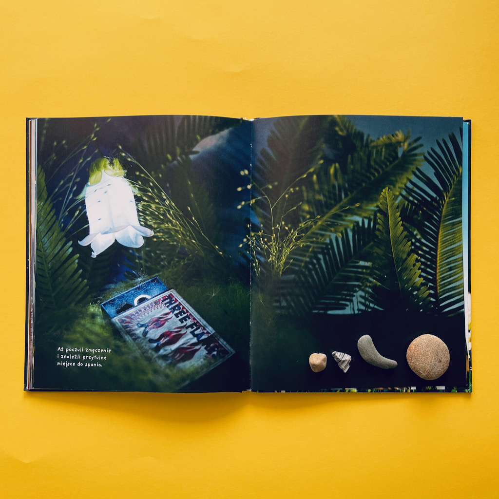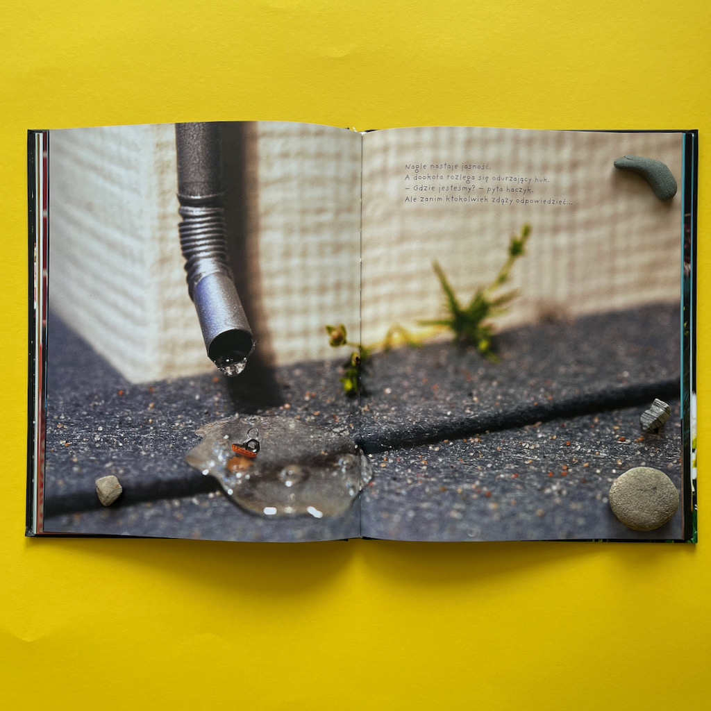 To piękna opowieść w niesamowitej i niespotykanej oprawie graficznej. Autorka stworzyła miniaturowy świat z rzeczy odnawialnych, z drugiej ręki. Sfotografowała całą historię w tej wykreowanej rzeczywistości. Zadbała o wszystkie szczegóły, a w swoich pomysłach nie raz zaskoczyła doborem materiałów. Dla moich dzieci świetną zabawą jest odkrywanie z czego jest zrobiona chmurka, z czego wzburzone morze, rynna czy miotła.