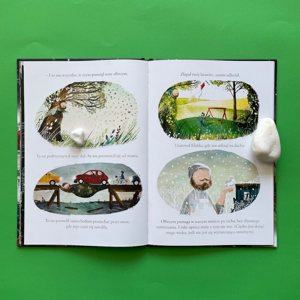 „Przyjazny Olbrzym” to ważna historia, ale także po prostu ciekawa opowieść. Spodoba się młodszym i starszym przedszkolakom. Jest przepięknie, malowniczo zilustrowana i już samo oglądanie tych obrazów jest przyjemnym doświadczeniem.
