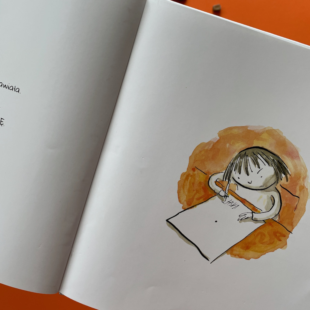 Przedstawiam wam dzisiaj książkę, która jest niezwykle skromna, a niesie ze sobą wiele emocji i treści. „Kropka” to historia dziewczynki, która nie chce podjąć działania, bo uważa, że nie ma talentu. Dlaczego tak myśli? Z kim się porównuje? Jakie poprzeczki sobie stawia? Prawdopodobnie takie, które postawili przed nią inni? Z jakiegoś powodu uważa, że nie da rady, mimo że jeszcze nie spróbowała. Na jej drodze pojawia się jednak nauczycielka, która znajduje sposób, aby zachęcić dziewczynkę do działania. Jeden prosty gest nauczycielki sprawia, że dziewczynka zaczyna wierzyć w siebie. Nie próbuje dorównać innym. Znajduje własną drogę.