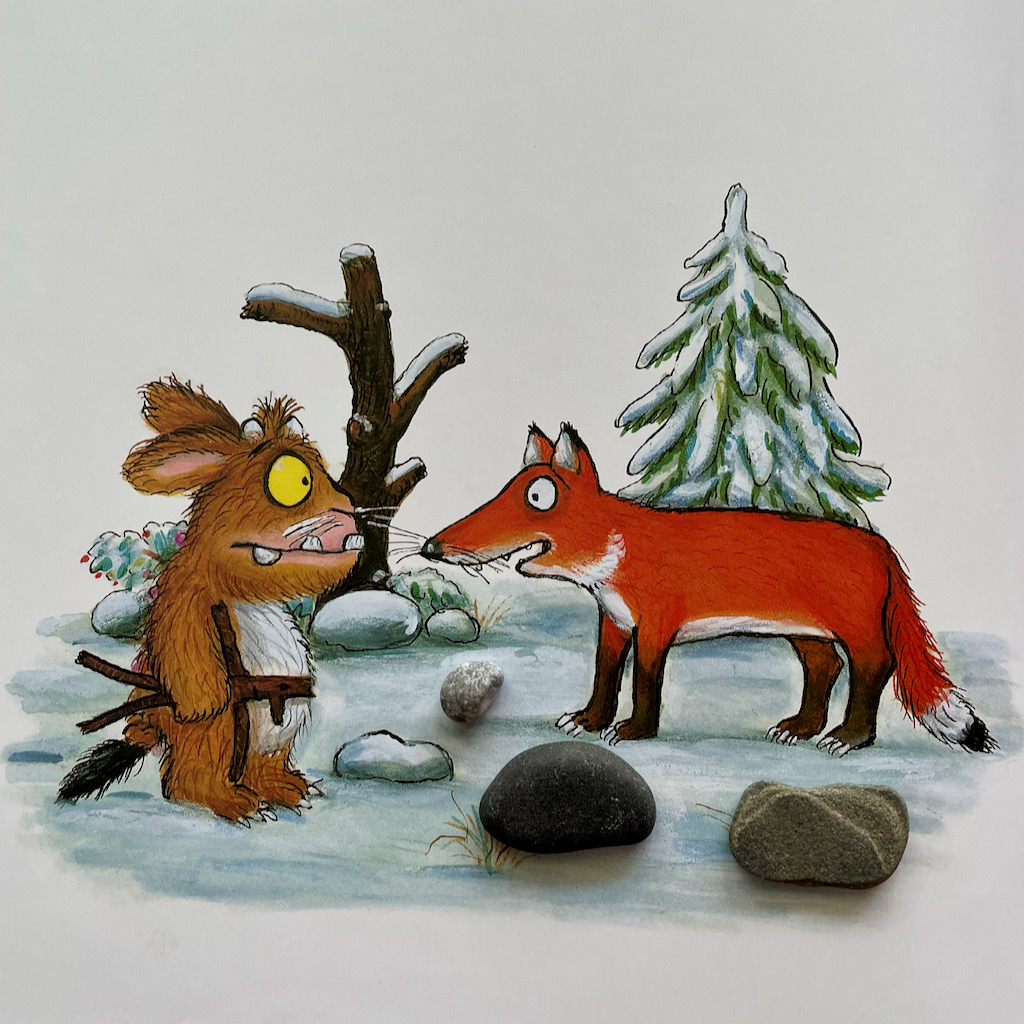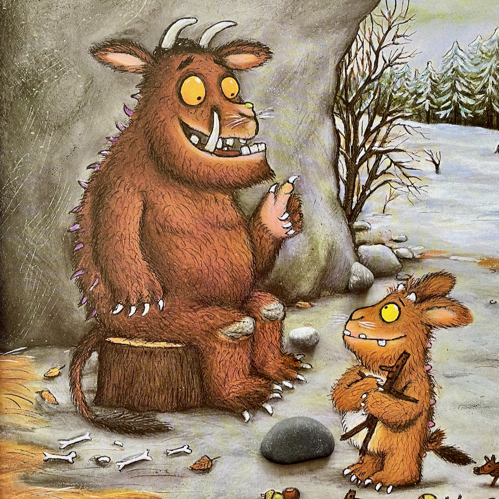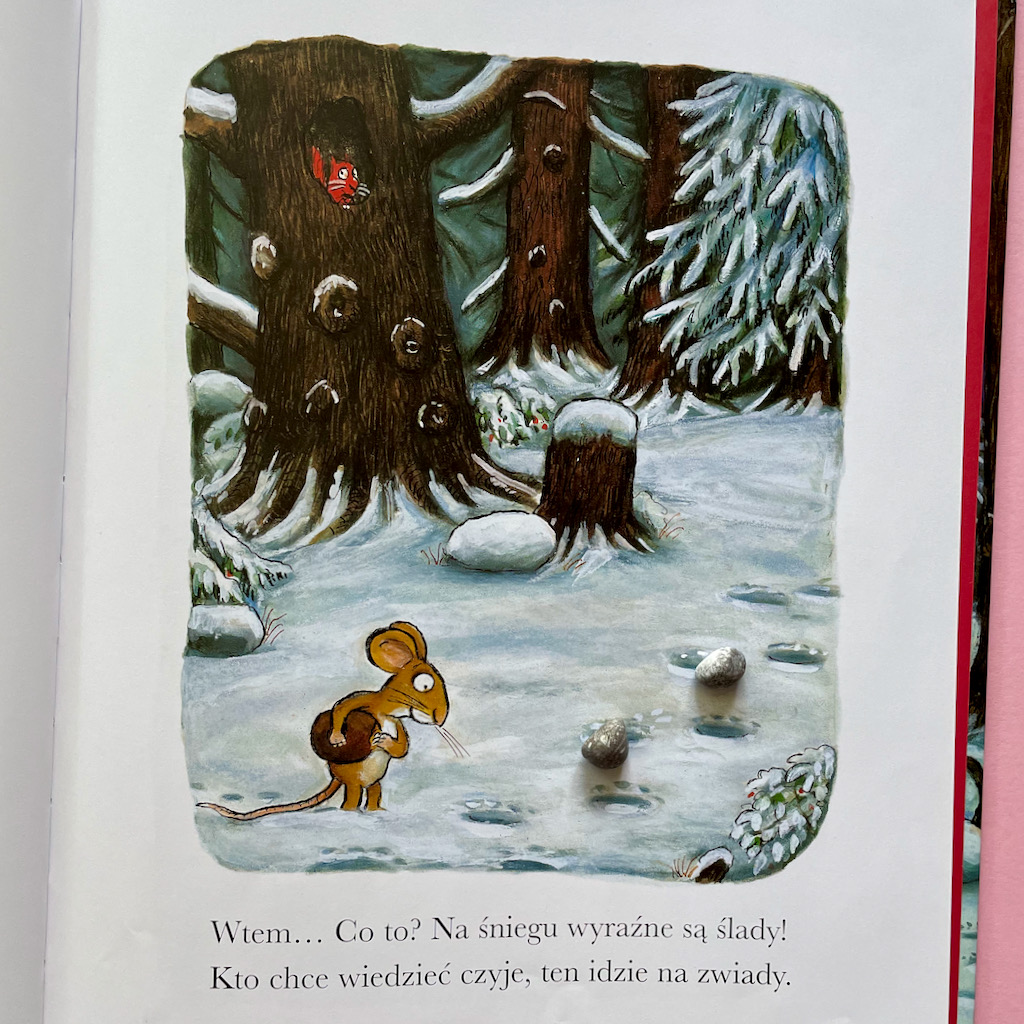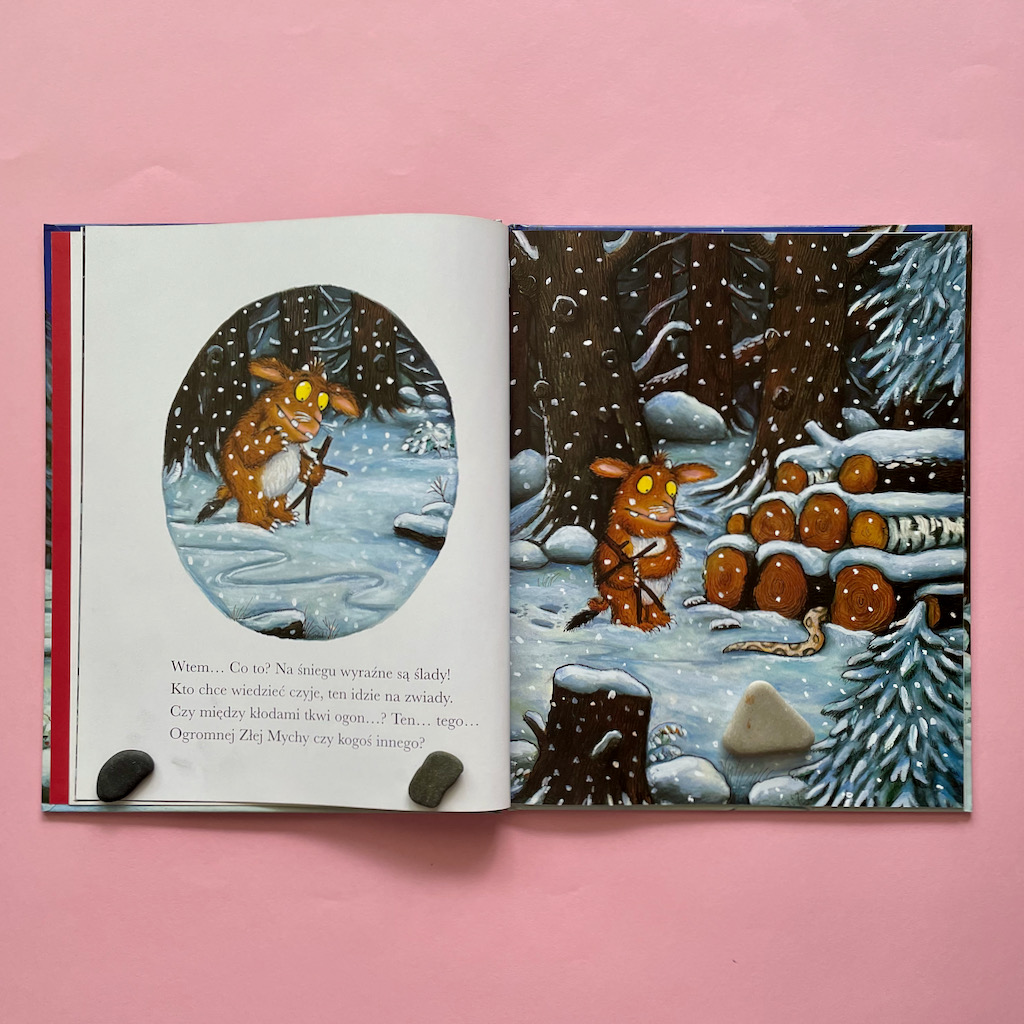 Pamiętacie Małą Myszkę, która wywiodła w pole wszystkich mieszkańców lasu i pokonała groźnego Gruffala? Jeśli nie, to koniecznie zaglądnijcie do tego wpisu: https://kamyki.blog/2021/03/26/czyzbys-tego-nie-wiedzial-kolego/. Gruffalo, choć miał chrapkę na smaczną myszkę, uciekał gdzie pieprz rośnie przerażony respektem jaki czują do niej leśni mieszkańcy. Co działo się z nimi potem? Gdzieś w leśnych gęstwinach Gruffalo ułożył sobie życie i wychował córeczkę, a Myszka bezpiecznie żyła sobie dalej, ciesząc się całkiem niezłą reputacją.