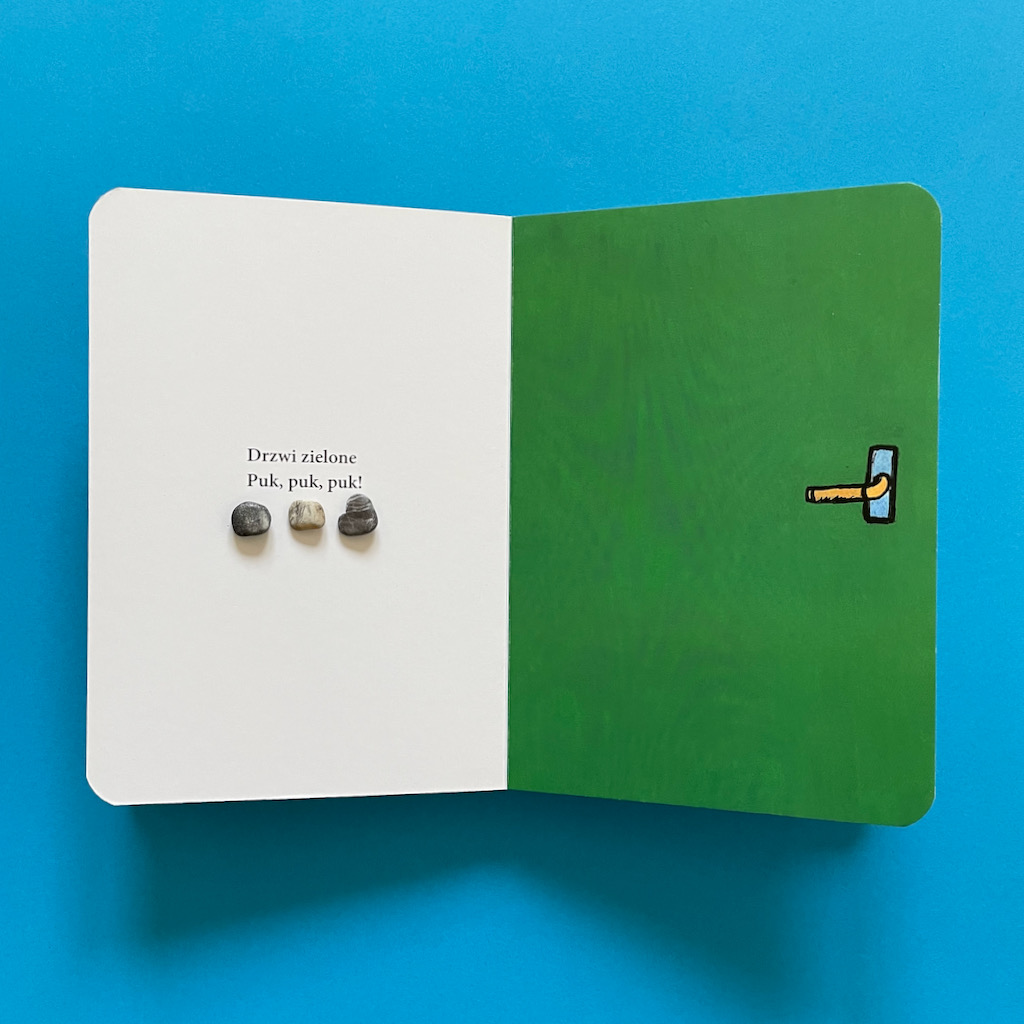 Każde drzwi to inny kolor – uczyliśmy się więc ich rozpoznawania. Za każdym razem mamy hasło „puk, puk, puk” – więc pilnowałam, by pukał faktycznie trzy razy. Szło to bardzo opornie, ale w końcu się nauczył. Z czasem zaczęłam mu wymyślać inne rytmy – ja mówiłam „puuuuk, puk, puk”, a on próbował to wystukać. To trudne ćwiczenia i czasem mu się udawało, a czasem nie, ale warto próbować, bo poczucie rytmu przydaje się potem przy wielu innych czynnościach.