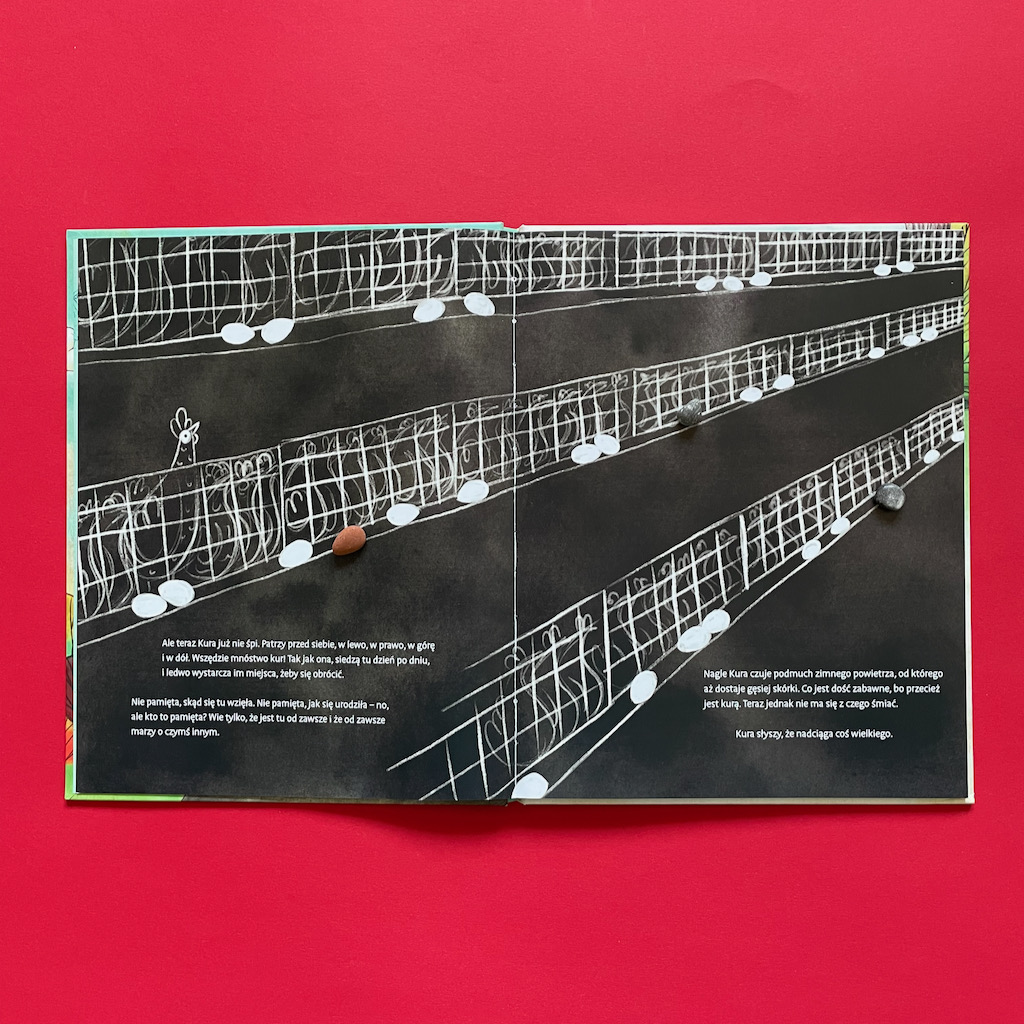 Co tak naprawdę było celem powstania tej opowieść? Czy zwrócenie uwagi, na to jak traktowane są kury w chowie klatkowym? Czy na to, że przyjaźń nie zna granic? Czy może odczarowanie naszego spojrzenia na kury? Nie potrafię wybrać, co było nadrzędną myślą autorki, ale odnajduję w tej historii, tak wiele, że nie mogę obok niej przejść obojętnie.
