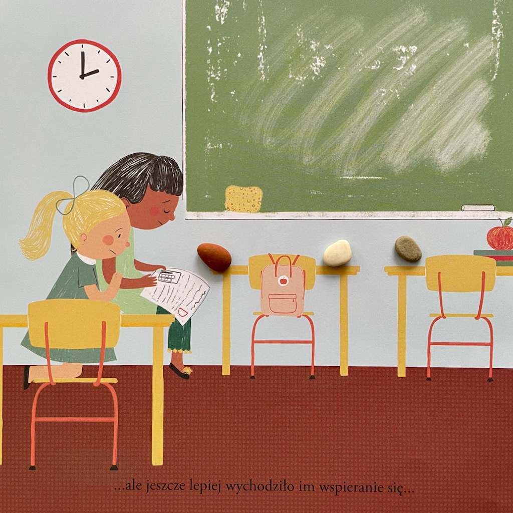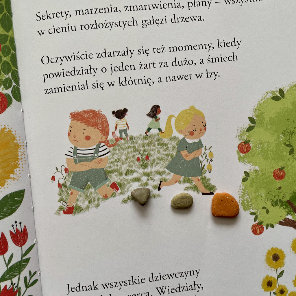 Książka ma śliczne ilustracje. Wyraziste, pełne emocji, ciepłe. Chciałoby się dołączyć do przyjaciółek i bawić razem z nimi.