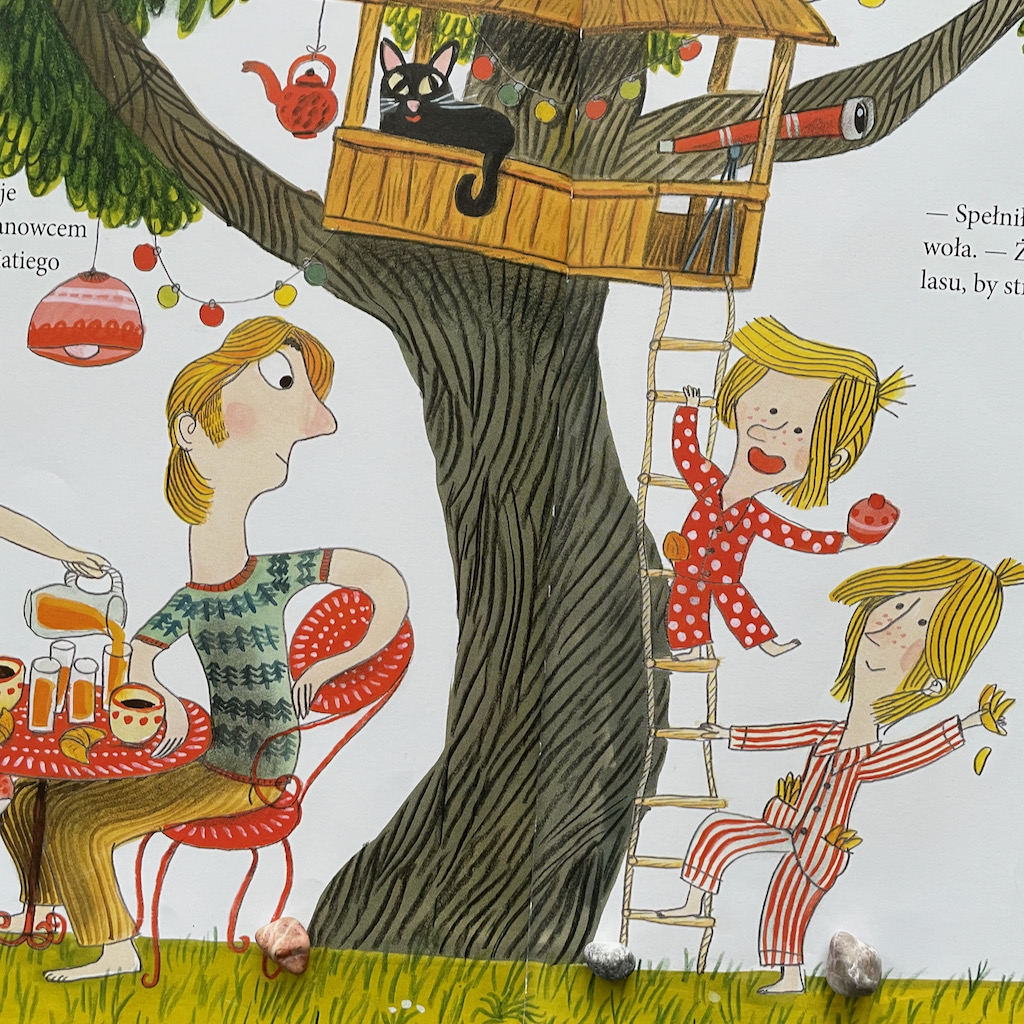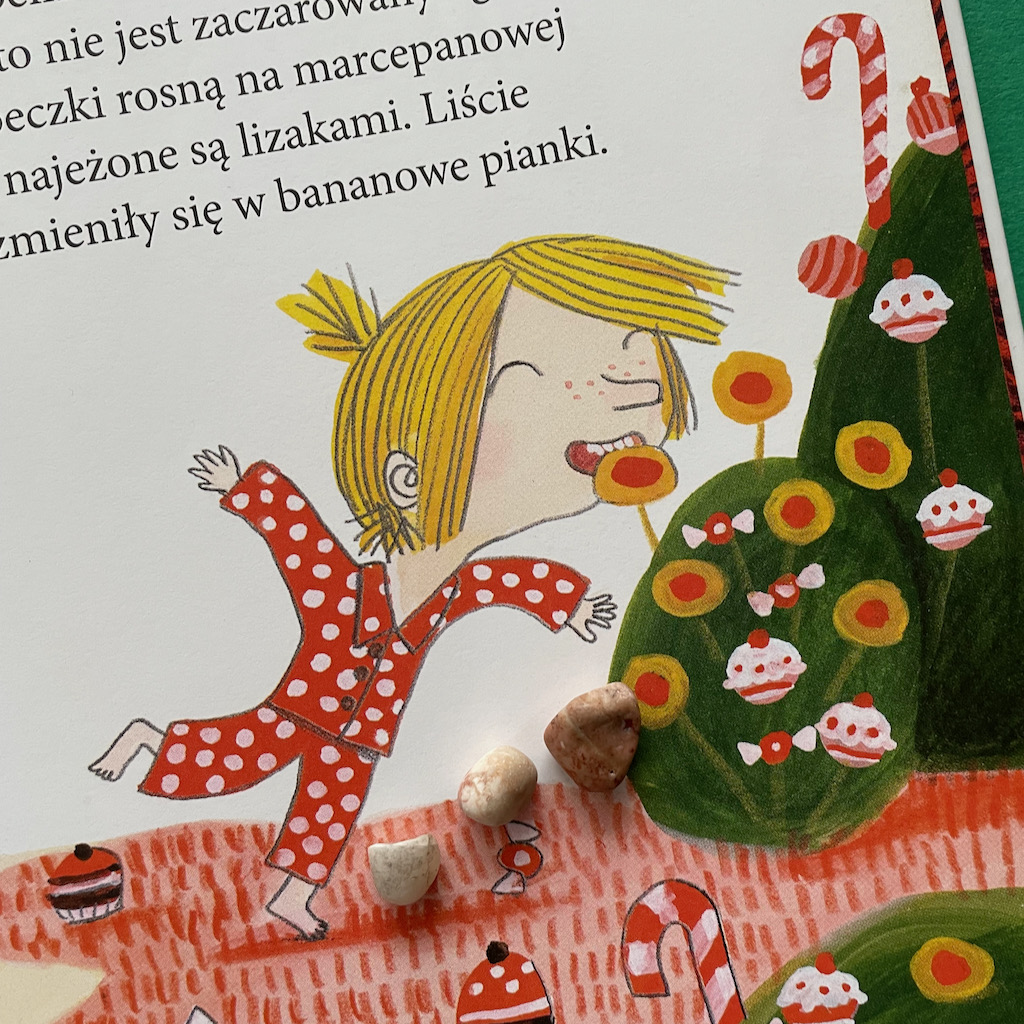 Nie będę zdradzać przygód, bo najlepiej jeśli poznacie je z dziećmi sami. Jest dużo słodyczy, są dinozaury i latające ryby. Całkowita abstrakcja, ale czyta się ją przyjemnie, wciąga wszystkie dzieci (przetestowałam na wielu, poza moimi własnymi) i wywołuje uśmiech na ich twarzach.