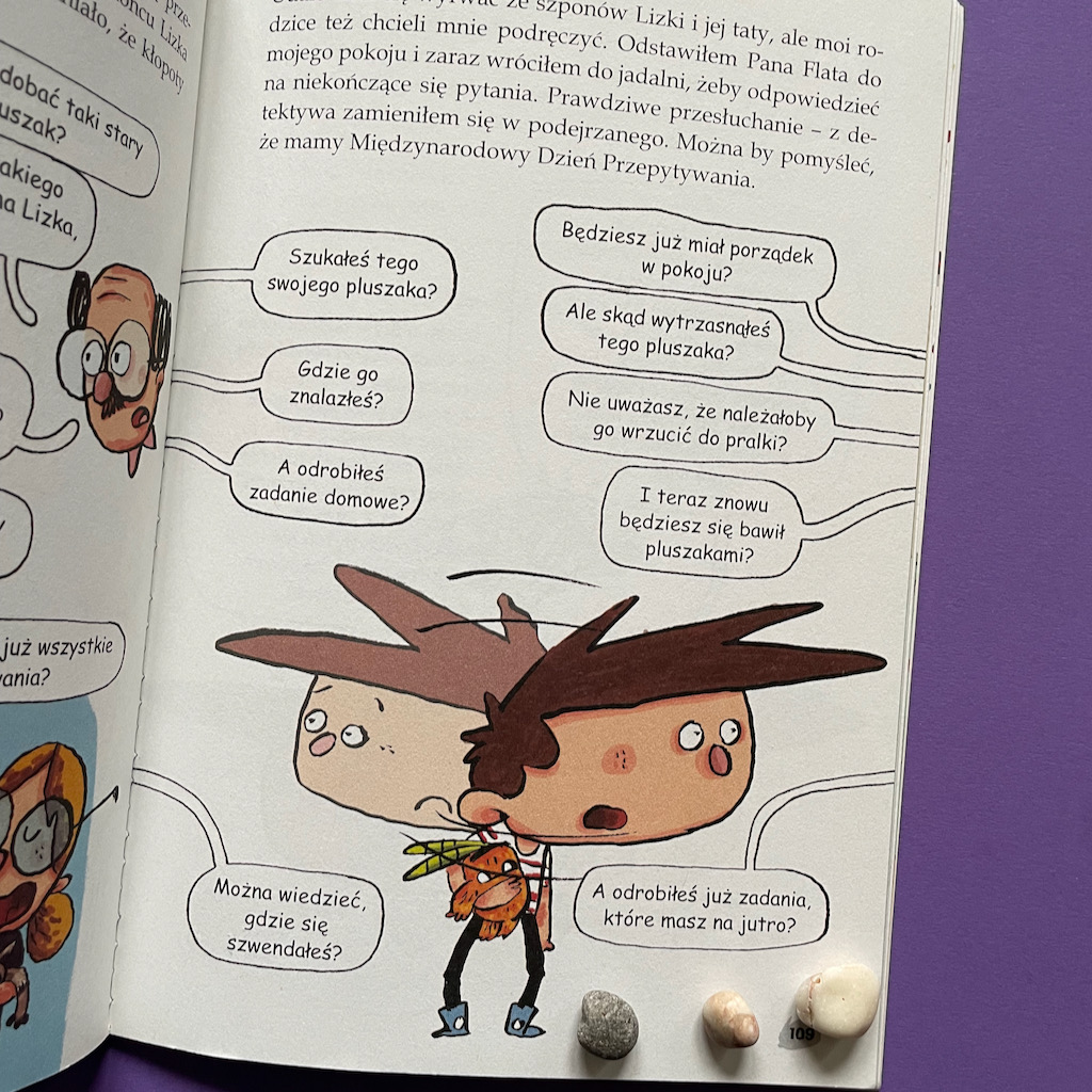 Książka napisana jest prostym językiem. Bardzo wyluzowanym. Gutek jest nieco zblazowany i to może razić rodziców, ale na pewno spodoba się dzieciom. Nie ma co ukrywać, że wzorce zachowania nie są tu najlepsze (bałagan w pokoju, narzekanie na ględzenie mamy i „wykładziki” taty, unikanie obowiązków i odpowiedzialności), ale ja uważam, że dzięki tym zabiegom dziecko ma szanse identyfikować się z bohaterem. Wartość edukacyjna dalszej części historii ma jednak większe znaczenie.