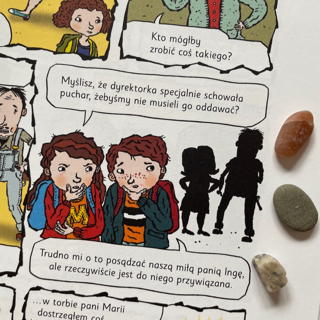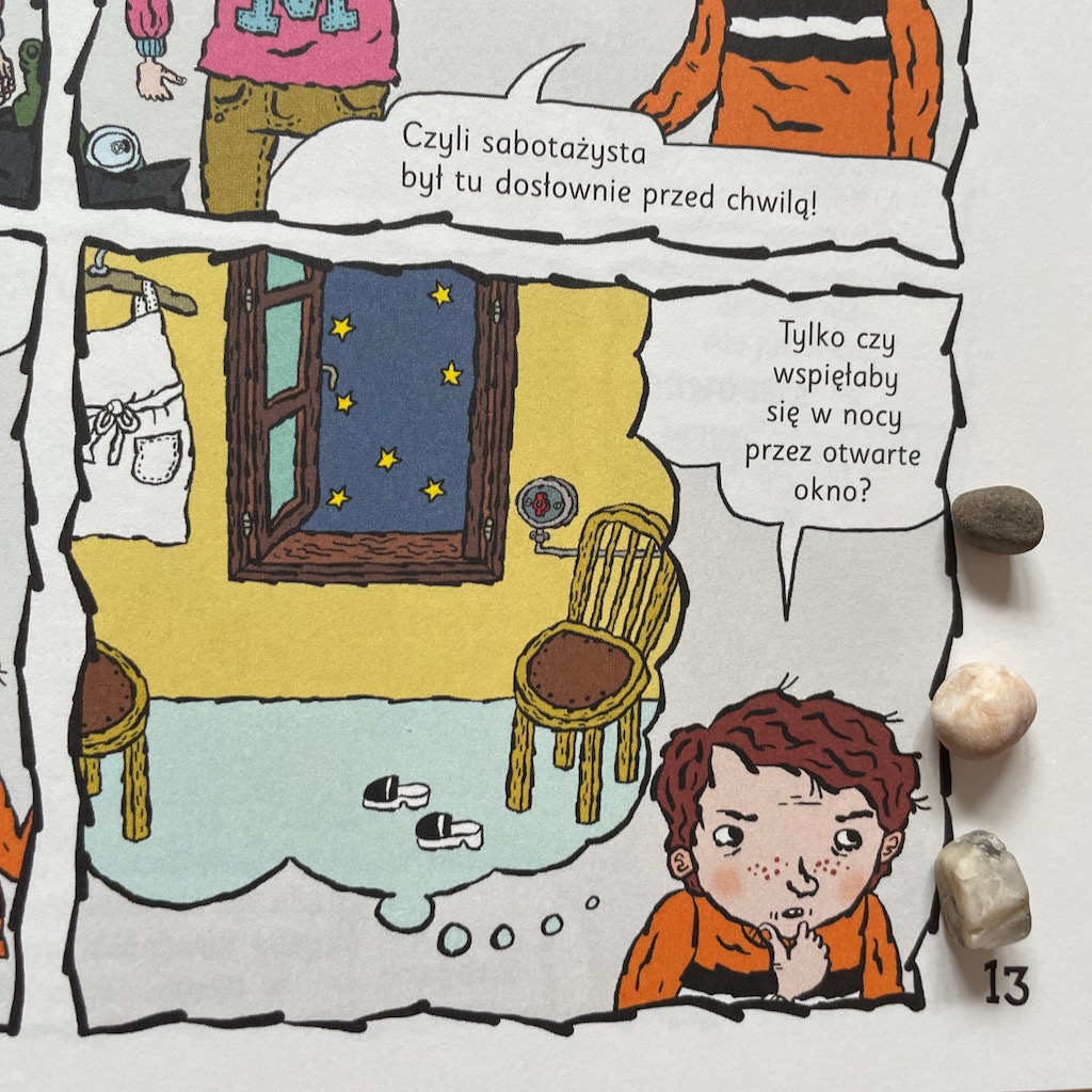 Nie będę opisywać każdej historii, ale zapewniam, że wszystkie są ciekawe. Sebastian pochłonął je w kilka chwil. Ja taże czytałam z zainteresowaniem. Polecam zatem początkującym czytelnikom, fanom komiksów oraz wszystkim lubiącym zagadki.