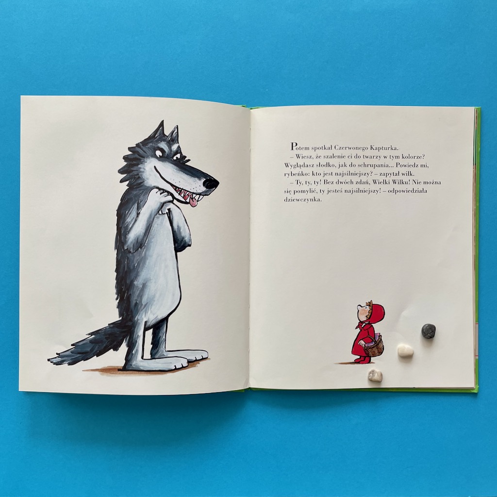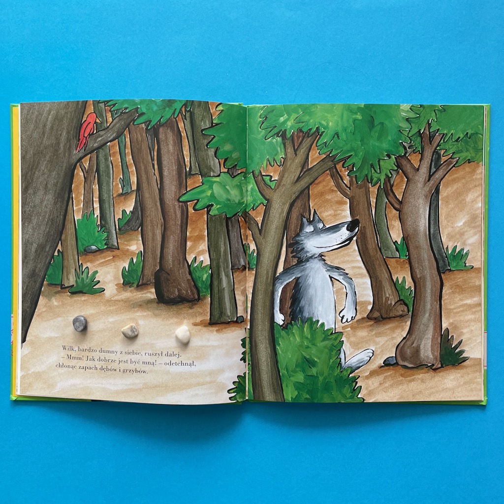 – Ha! Tak właśnie myślałem: jestem najsilniejszy! Lubię, jak mi się to mówi i powtarza! Uwielbiam komplementy, nigdy mi się nie znudzą – napawał się wilk.