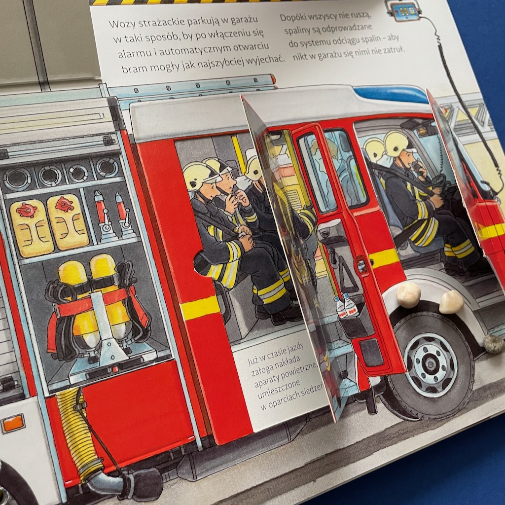 Fabularyzowane historyjki o wozach strażackich też nie zdają egzaminu. Podobają się Tymkowi, ale generują wiele jego pytań, na które ja nie znam odpowiedzi. Oczywiście szukam ich w internecie, ale fajnie byłoby mieć pod ręką coś, co pozwoli szybko zaspokoić jego ciekawość.