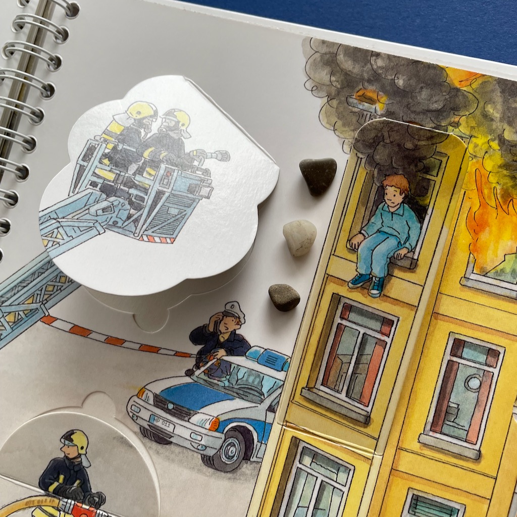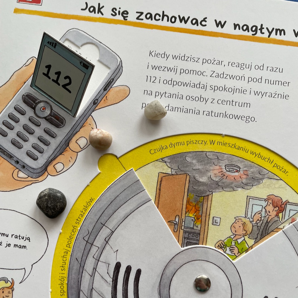 Wiadomości są tutaj zwięzłe, napisane prostym językiem. Na każdej rozkładówce przedstawiony jest inny obszar pracy strażaków, a ilustracje są spójne z tekstem. Oczywiście największą frajdą są otwierane okienka. Mimo że znamy już na pamięć ich zawartość, to nie możemy ominąć żadnego przy każdym kolejnym czytaniu.