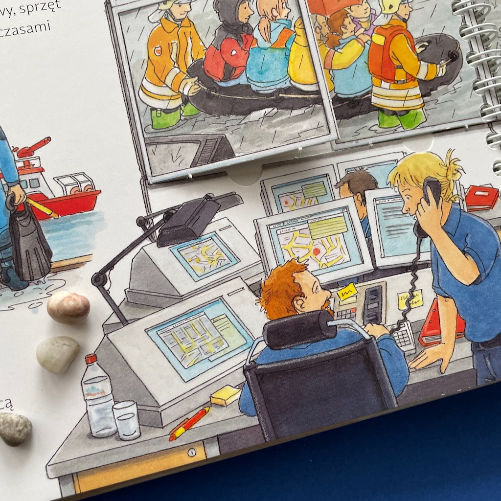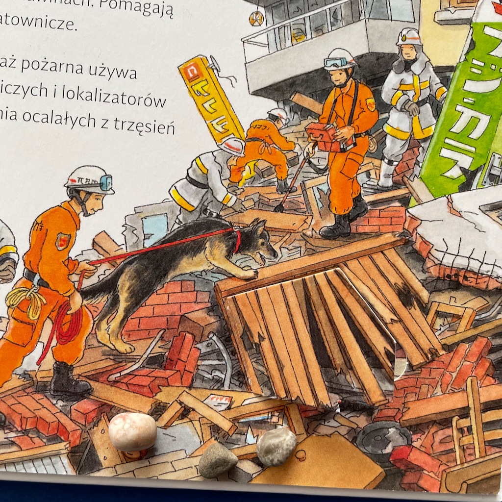 Treści w tym polskim wydaniu konsultowane były z Jednostką Ratowniczo-Gaśniczą w Raciborzu. Dzięki temu dzieci poznają pracę strażaków w naszym kraju. Ale mam także rozkładówkę, na której pokazane są działania strażaków na całym świecie i zadań, które wykonują oni w związku z potrzebami jakie występują w ich krajach (np. w Australii czy Japonii).