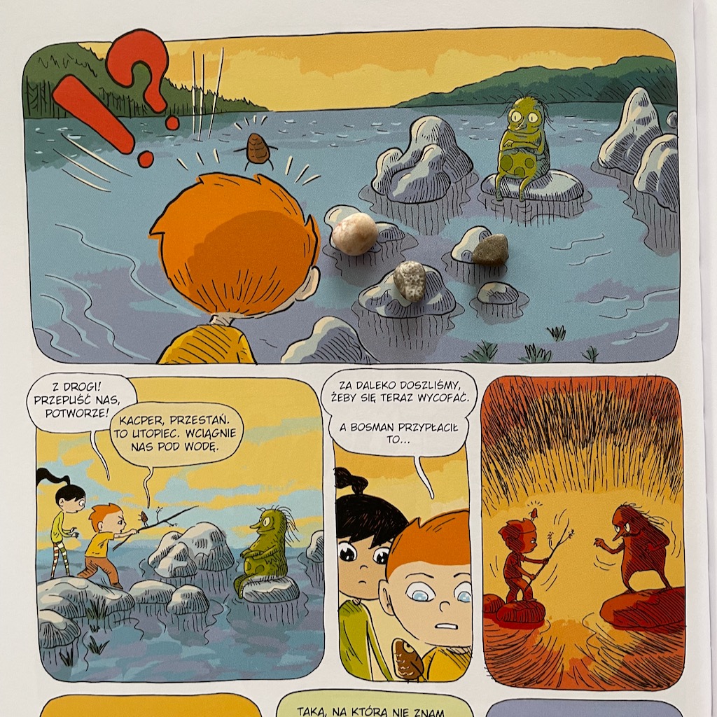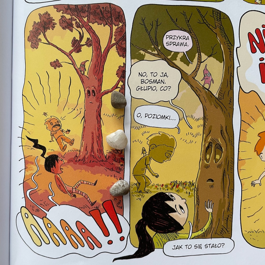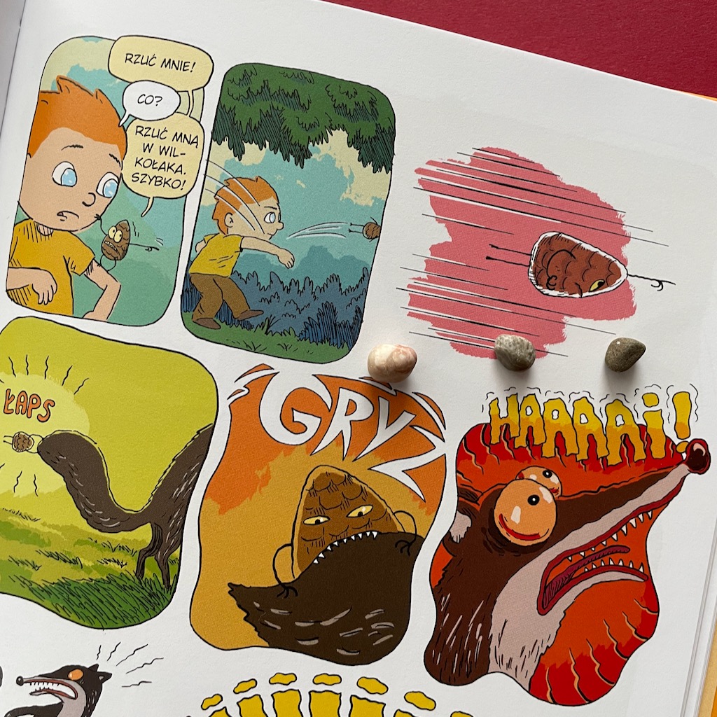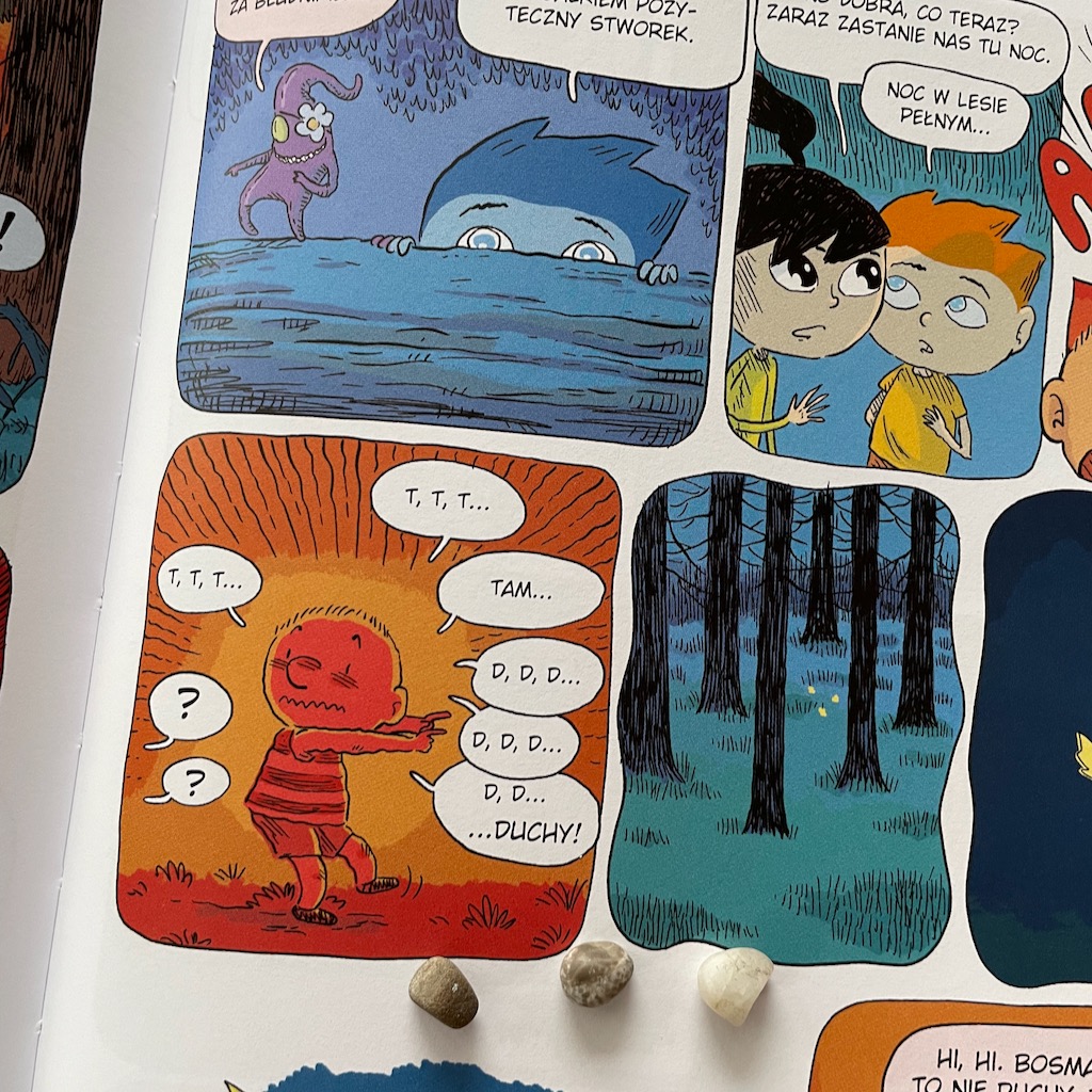 Nasza słabość do komiksów po raz kolejny została w pełni zaspokojona. Fantastyczne rysunki – czytelne i bardzo kolorowe. Tekst świetnie sprawdzi się dla dzieci, które samodzielnie już czytają, ale także dla młodszych odbiorców, którym czytają rodzice. Dzieje się dużo i czasem jest dość nerwowo, ale nie wywołuje to przerażenia u młodszych dzieci (u nas u czterolatka), a dodatkowo treść jest dla nich zrozumiała. Tak więc można powiedzieć, że jest to komiks wielopokoleniowy. Bardzo liczę na to, że pojawią się jego kolejne części!