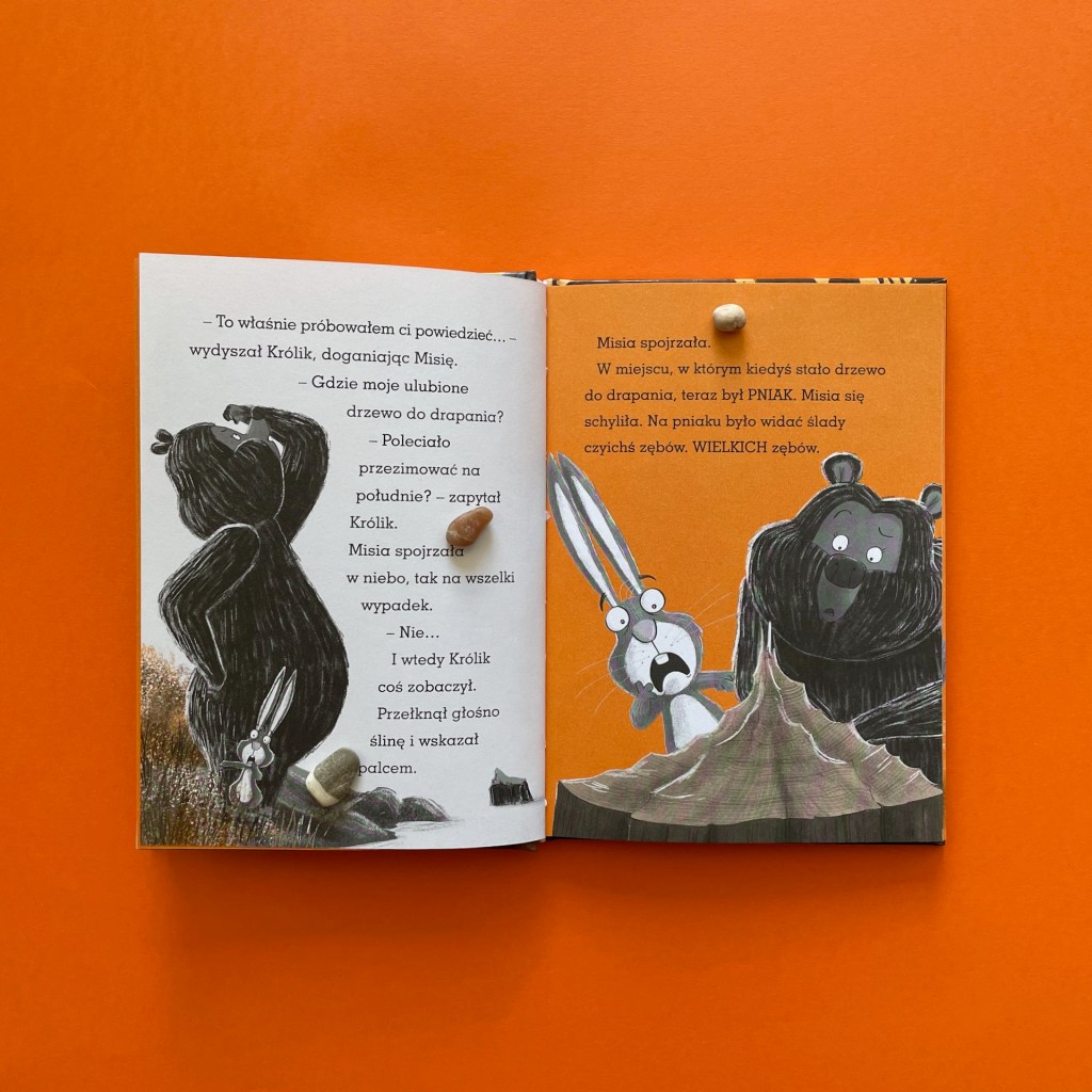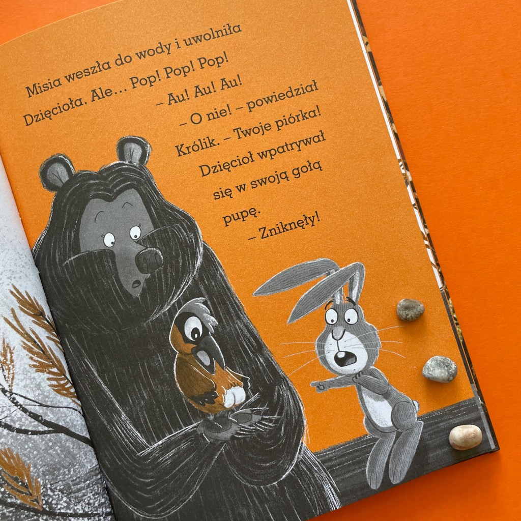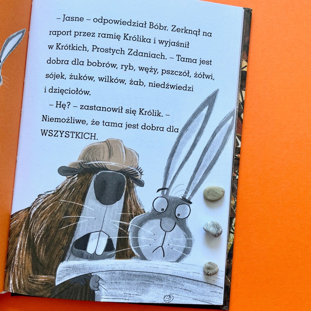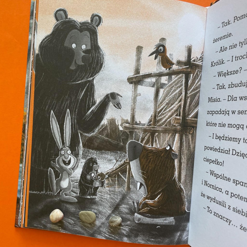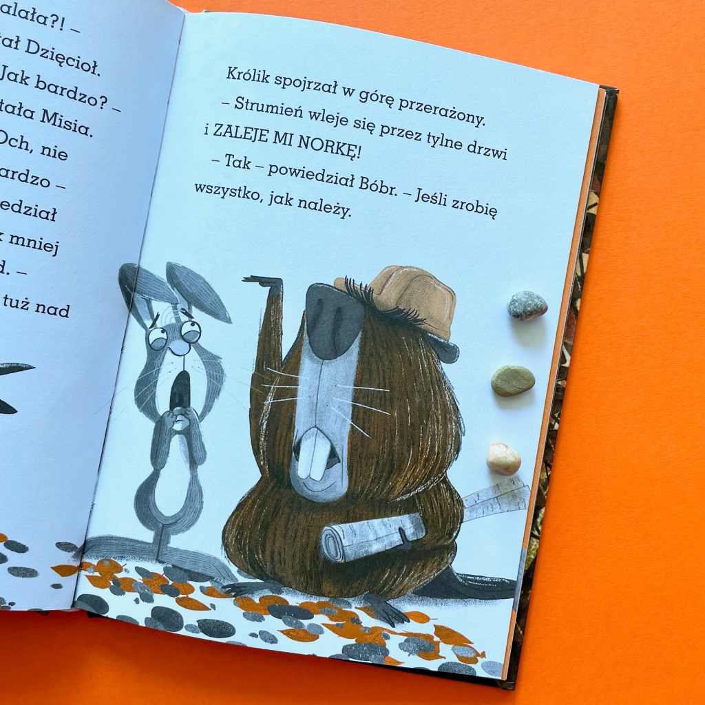 Jak potoczą się ich losy, musicie dowiedzieć się sami. Ja natomiast napiszę o tym, że to kolejna historia, która zwiera w sobie wiele wątków, a każdy z nich można rozwinąć w rozmowach z dzieckiem. Na początek mamy kilka tematów edukacyjnych: jak zmienia się przyroda jesienią, jak zwierzęta przygotowują się do zimy, jak powstają tamy i do czego są potrzebne, co to są żeremie, do czego służą ptakom pióra w ogonie.