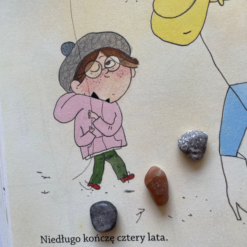 Tekstu jest tutaj niewiele, ale to też jest charakterystyczne dla dziecka. Szczególnie, że nasz bohater nie ma jeszcze czterech lat. Przedstawia fakty, czasem mówi o tym, co czuje i myśli, ale jest raczej oszczędny w słowach.