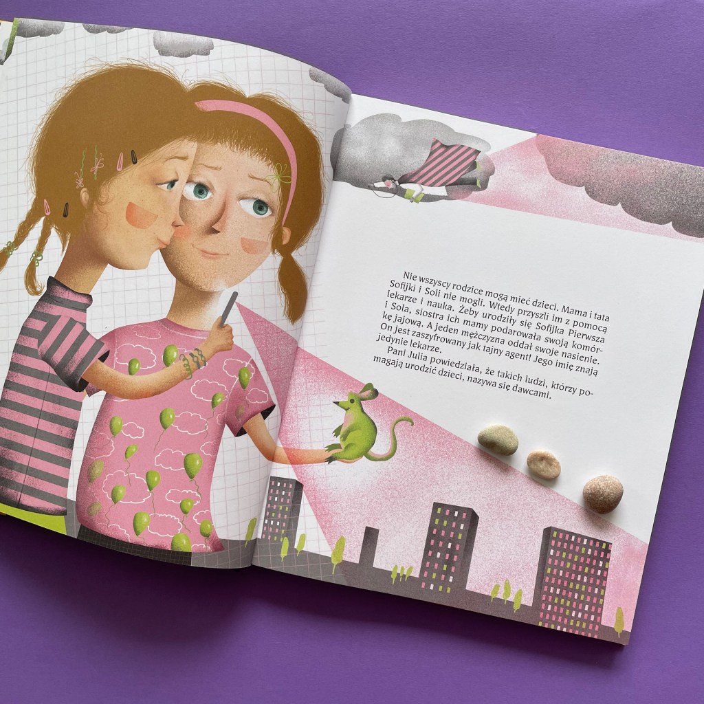 Historie dzieci, które przedstawione są w tej książce dotykają wszelkich możliwych zagadnień. Mamy siostrzyczki urodzone metodą in vitro. Jest tęczowa rodzina z dwoma mamami. Są dzieci porzucone przez swoich rodziców lub takie, które trafiły do domów dziecka, bo ich rodzicom odebrano prawa rodzicielskie. Rodziny patchworkowe. Dzieci wychowywane przez samotne mamy. Dzieci wychowywane przez babcie, bo ich rodzice są na emigracji zarobkowej. Dzieci, które żyją na dwa domy, i których rodzice bardzo często o nich zapominają. I wiele innych sytuacji, które mogą się nam wydawać inne, ale są codziennością milionów dzieci na świecie.