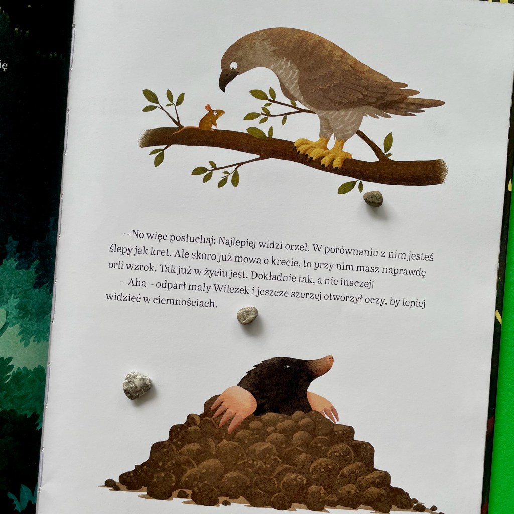 – A od czego? – zapytał zaciekawiony maluch i nadstawił uszu. Tato Wilk zamyślił się na chwilkę.