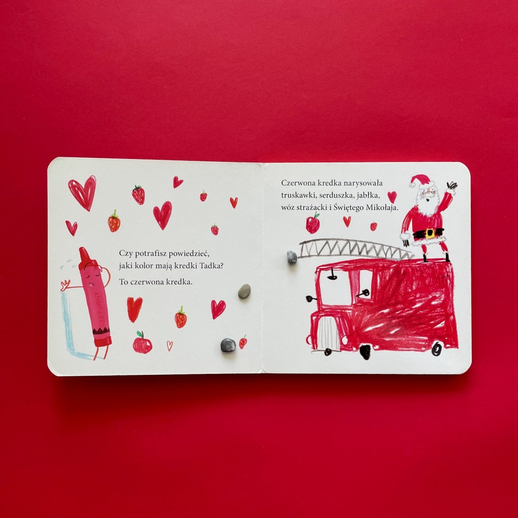 Samo czytanie książek to jedno, ale warto także pociągnąć temat poza nimi. Są doskonałą inspiracją do różnych zabaw. Dziecko może wymyślać, co jeszcze mogłaby narysować dana kredka. Może także spróbować wyszukać w swoim zestawie kredek te same kolory, które poznało w książeczce. Przedszkolak może je układać i liczyć podobnie, jak na stronach książki. Może także pomóc niektórym kredkom i samodzielnie narysować to, o co proszą lub o czym marzą. Ale, żeby wiedzieć, co to jest, musicie najpierw po te książeczki sięgnąć. Jestem pewna, że będziecie się świetnie bawić.