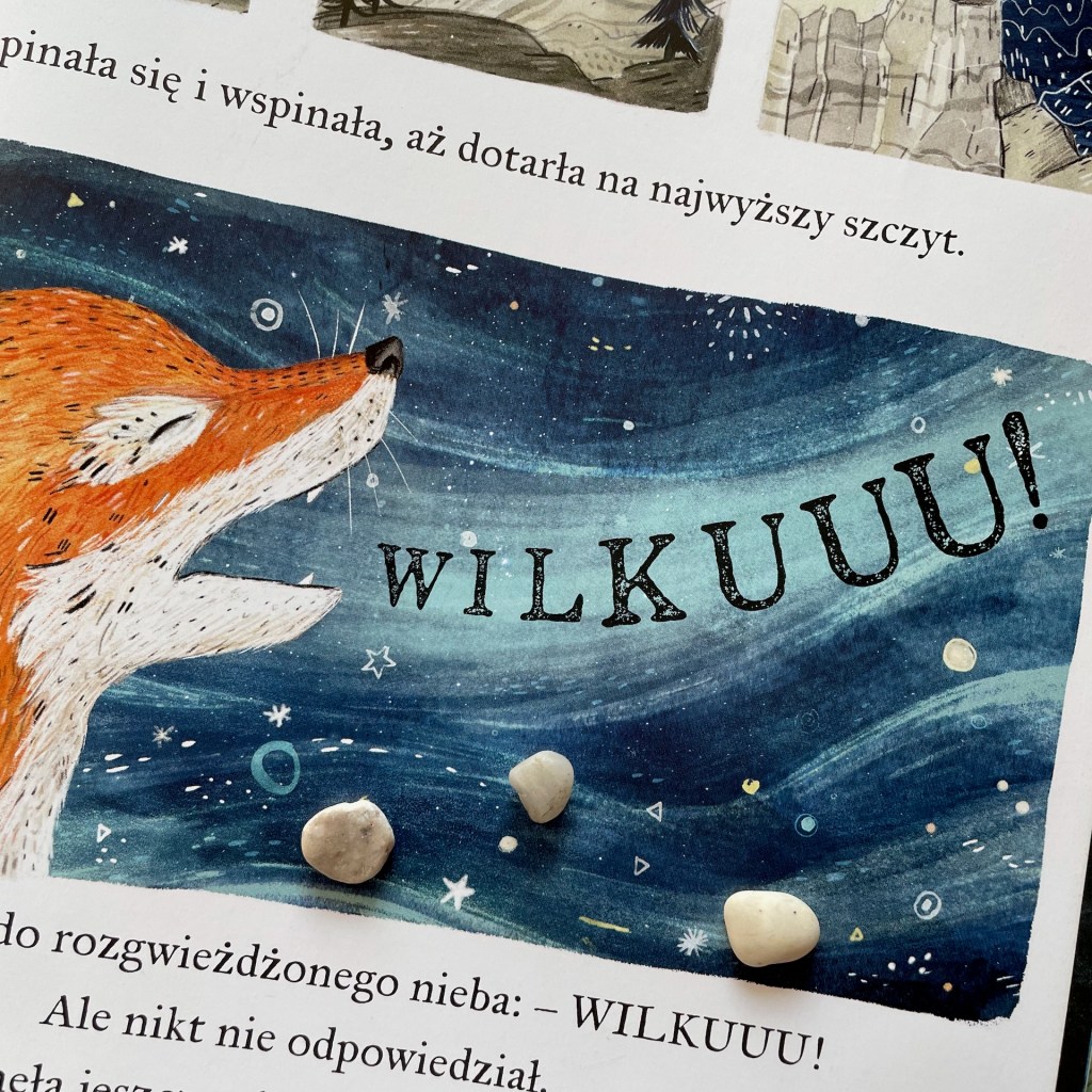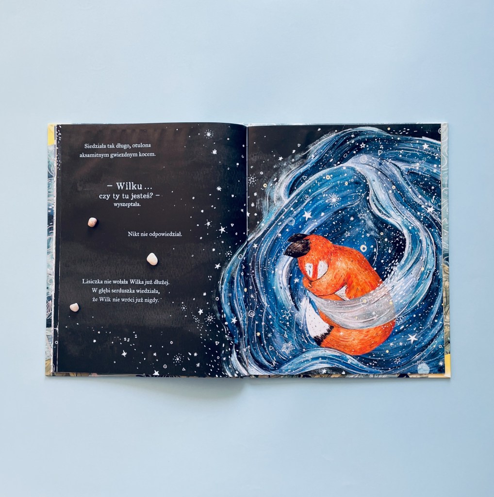 „Wróć, mój Wilku, wróć” to niesamowite połączenie magicznych ilustracji, trudnego tematu i pięknej opowieści. Jeśli szukacie czegoś, co wprowadzi dzieci w temat śmierci i żałoby z wyczuciem, to jest to idealna pozycja. Zaznaczam jednak, że nie powinno się jej zostawiać bez słowa wyjaśnień. Myślę zresztą, że nie powinno się tego robić, po żadnej książce dotyczącej śmierci, ale tutaj dodatkowo powinniście sprawdzić, czy dziecko zrozumiało metaforę. Nie strońcie od niej, bo gwarantuję Wam, że już po pierwszym wytłumaczeniu dziecko zrozumie te porównania i będzie tę historię przeżywało zupełnie inaczej.
