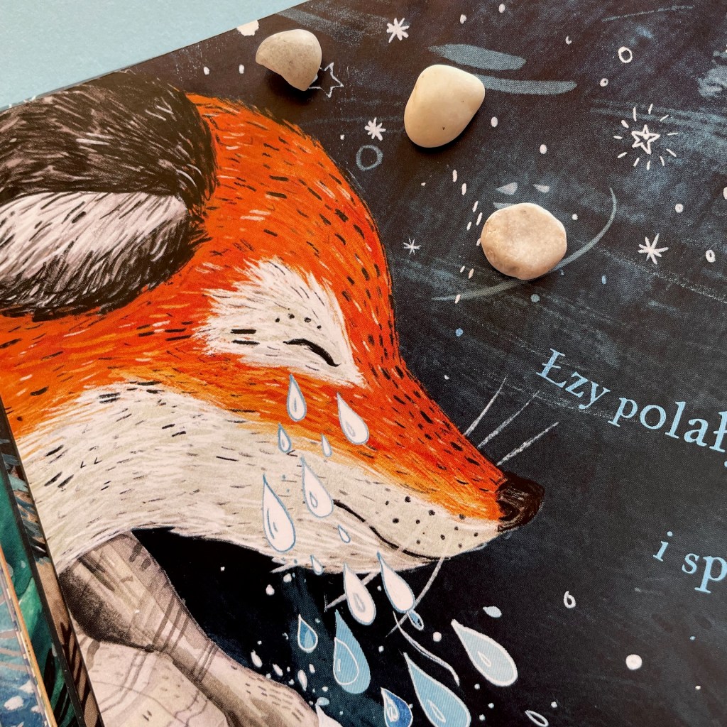 Oczywiście natychmiast po otworzeniu książki zwracamy uwagę na ilustracje. Są wspaniałe, przyjazne i bardzo ciepłe. Nawet na stronach, w których najmocniej widać przeżywaną przez Lisiczkę żałobę, nie czujemy grozy ani przygnębienia. To wyjątkowe sceny, potraktowane z ogromną wrażliwością. Czujemy mnóstwo emocji, współczujemy Lisiczce (niektórym nawet popłynie po policzku łza) i mamy wielką ochotę ją przytulić i pocieszyć.