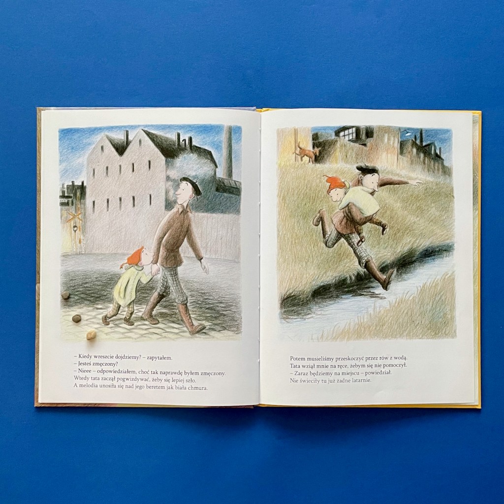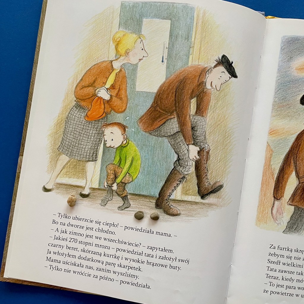 Ilustracje w tej książce wspaniale oddają cały nastrój. Jest tu codzienność połączona z niezwykłym klimatem. Widać zaciekawienie chłopca i przepiękne kadry oddające, to co tato chciał pokazać synowi. Przyznaję, że ilustracja z nieboskłonem jest jedną z moich najukochańszych ilustracji w książkach dla dzieci. Robi na mnie ogromne wrażenie za każdym razem.