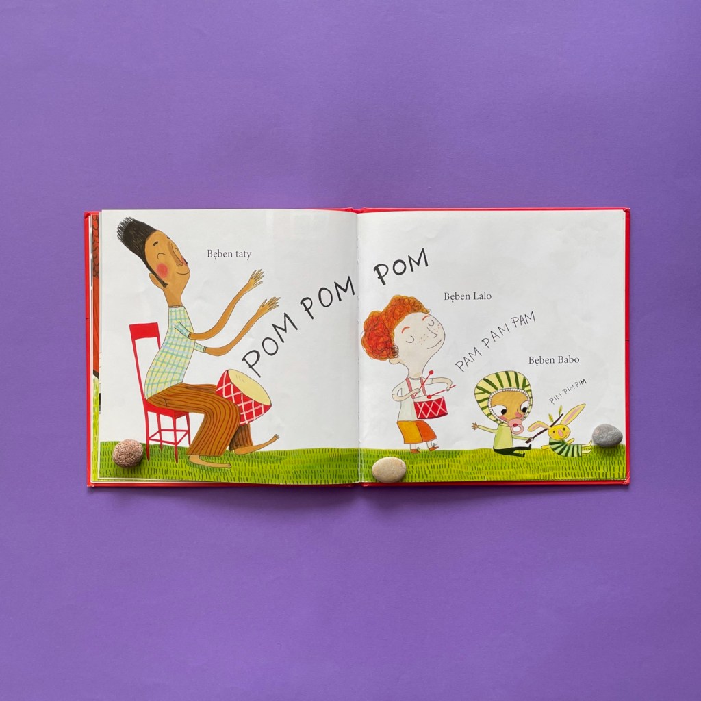 Jeśli mieliście już w swoich rękach „Lalo gra na bębnie” i Wasze dzieci polubiły tę szaloną rodzinkę, to możecie bez zastanowienia sięgnąć po „Bintę”. Nic jednak nie stoi na przeszkodzie, by zacząć od Binty, nawet jeśli wcześniej nie poznaliście Lalo. Kolejność nie ma znaczenia, więc jeśli kiedyś wpadnie Wam w ręce którakolwiek część, to spokojnie możecie brać. Nie znajdziecie tutaj typowych wyrazów dźwiękonaśladowczych. Brak miauczących kotków, rechoczących żab czy pukania do drzwi. Jeśli potrzebujecie odmiany, to będzie to dla Was doskonały wybór. Naprawdę przetestowaliśmy je te osiem milionów razy. 😉