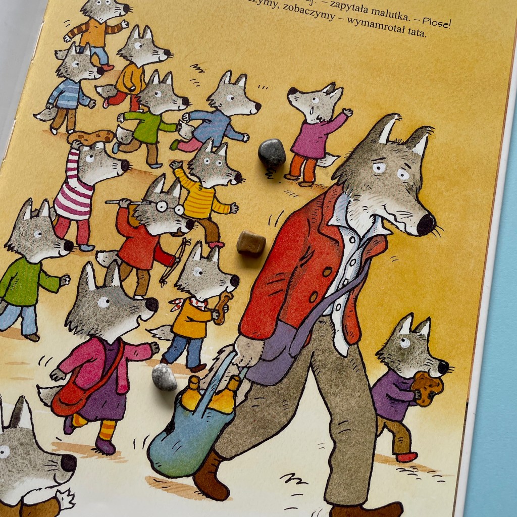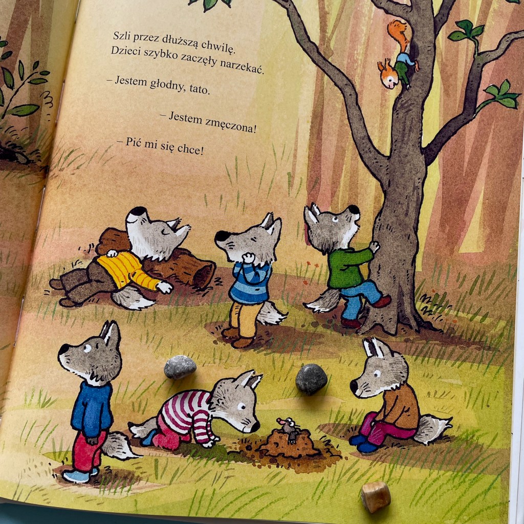 Piękne, kolorowe ilustracje przykuwają uwagę dzieci. Fantastycznie obserwuje się wilczątka, które są w nieustannym ruchu. Każde z nich inne, każde z głową pełną pomysłów. Doskonale też widać codzienność każdego dziecka i rodzica: a to głośne komentarze w najmniej oczekiwanych momentach, a to bójka rodzeństwa i rozbite kolano, a to „jestem głodny” i „jestem zmęczona”. Tata wilk nie ma lekko, a my jako rodzice natychmiast z nim sympatyzujemy.